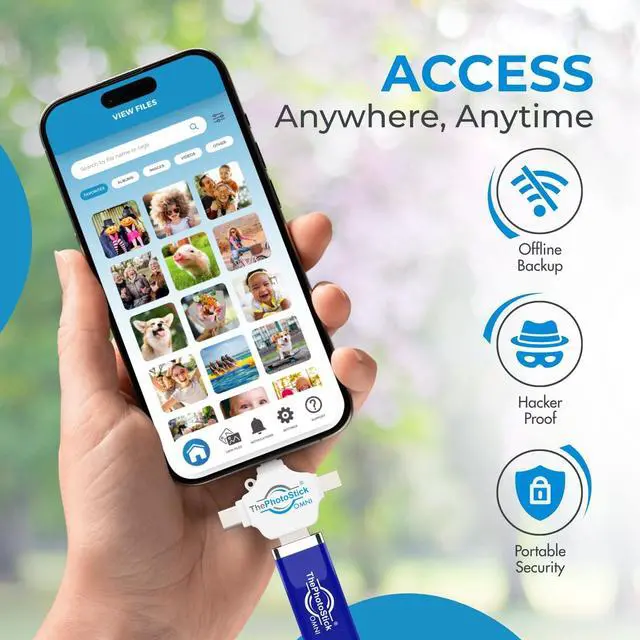 Simple, secure content backup ThePhotoStick Omni automatically finds and saves photos, videos, and other files, helping to keep your digital life organized and protected across devices. ^^ Massive capacity This 256GB thumb drive and storage stick holds over 102, 400 images and videos, making it a reliable and safe solution for data access and archiving. ^^ Multi device compatibility Works with PC, Mac, iPhone, iPad, and most Android phones and tablets. One flashdrive for your entire digital collection. ^^ A thoughtful gift for any occasion Give friends and family a simple way to relive a lifetime of memorable moments! ThePhotoStick Omni is perfect for sharing ALL of life's milestones in ONE special keepsake.