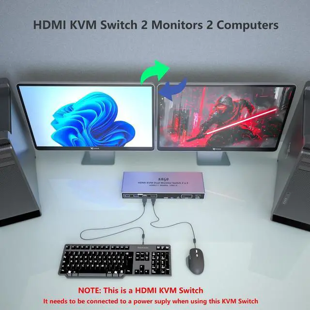 Monitor 2 Computers: This HDMI KVM Switch with 2 HDMI ports allows control of 2 Computers, enabling them to share a single monitor along with keyboard and mouse. any desktop pc with hdmi output like laptop, gaming console, office pc, network server computer, mini pc can share same keybord monitor mouse, cut costs and keep desktop room tidy. Fast switching between 2 computers (2-5 seconds depending on resolution) ^^ USB Switch - Share 4 USB 3.0 devices, support usb wireless keyboard mouse, printer, scanner, U disk, portable SSD drive, flash drive. plug & play, drive-free, compatible all os, windows, dos, mac os, android, kinds of linux.