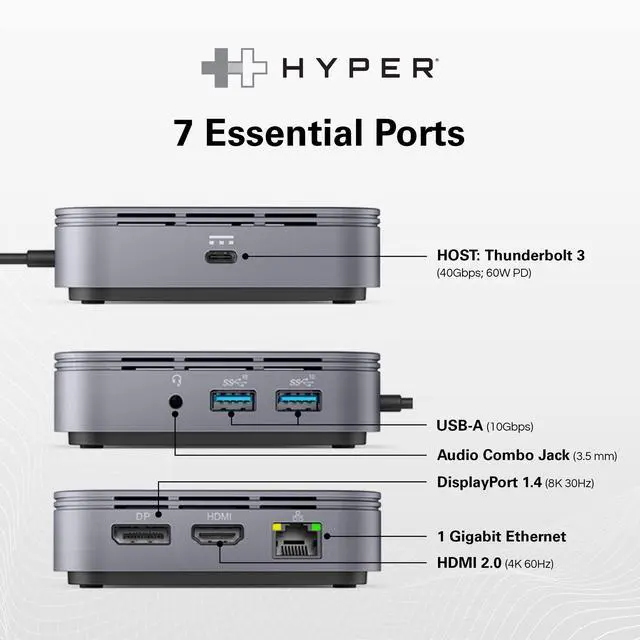Thunderbolt 4 Docking Station with Optimal Dual Display: Connect to 2 external monitors at 4K60Hz HDMI video or 1 external display w/ 8K30Hz DP video. Note: Dual displays for M1/M2 Macs not supported.