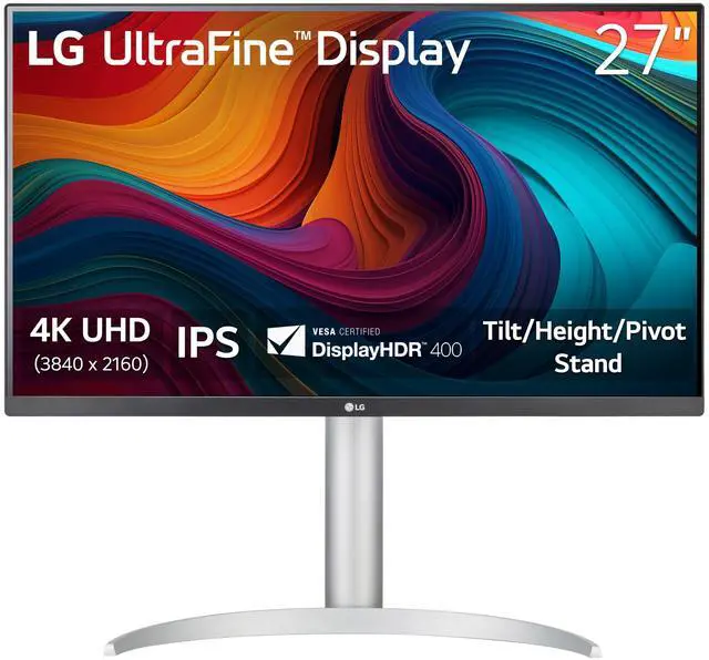 LG 27UP650K-W 27-inch 4K QHD (3840 x 2160) Computer Monitor, 60Hz, 5ms, DisplayHDR 400, Reader Mode, Flicker Safe, HDMI, DisplayPort, Tilt/Height/Pivot adjustable stand, White