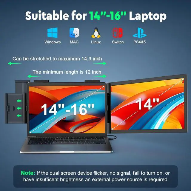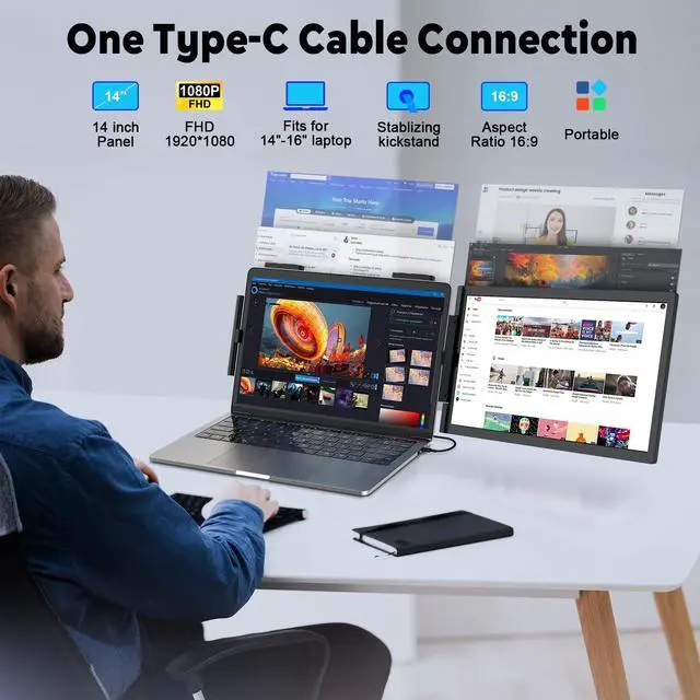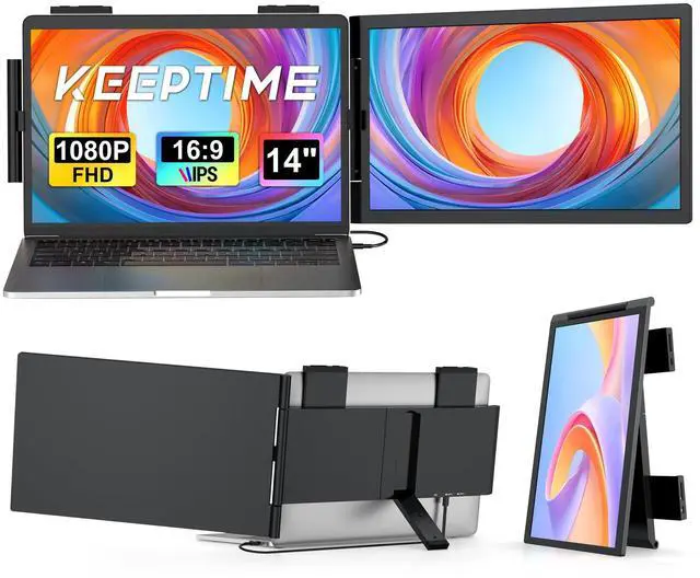 Boost Productivity KEEPTIME laptop screen extender allows you to open multiple windows at the same time for work, video conference, watching movies, or gaming. Say goodbye to the hassle of constantly switching back and forth on a single laptop screen continuously. Perfect for people who work on the go, remote workers, IT professionals, Stock traders, Programmers, game players, etc. Compatible with most of 14"- 16" laptops!!! ^^ Exceptional Visual Performance14 inch laptop monitor extender provides 1080P FHD IPS screens, 300 nits brightness, 1000:1 contrast ratio and 100% sRGB, the portable monitor for laptops ensures a clear and visually stunning workspace.