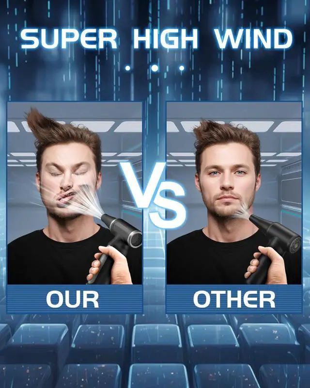 Turbo fanSuper High-Speed motor 330000 RPM--This air duster the maximum speed of 300000 RPM, 200 G wind pressure, delivering strong performance with a peak wind speed exceeding 120m/s, mini blower easily clear the dirt hidden in various gaps on the keyboard or any electronic devices, electric duster strong wind and high performance. ^^ air dusters for cleaningMulti use--compressed air duster is a versatile tool, such as is keyboard cleaning kit, electric leaf blower, car detailing supplies, pc duster, snow blower, turbo fan, car dryer, air broom and so on.