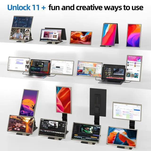^^ Detachable Screen Design: Boost your productivity by up to 300% with a flexible design that supports both screen extension and mirroring modes. The detachable screen with multifunctional stand allow you to easily customize your workspace, arranging the screens to fit your specific workflow and creative needs.