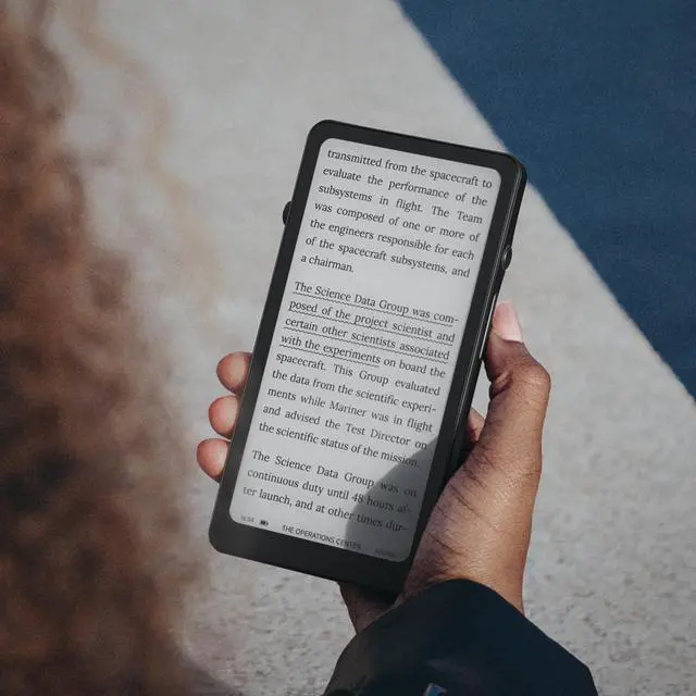 Thoughts Rest, Ideas Bloom- Step away from distractions and into clarity. With its paper-like screen and compact form, Krono offers a space to nurture new ideas, where every pause becomes the start of something meaningful. ^^ Embracing minimalist aesthetics, Krono exudes calm geometric beauty, a nod to traditional mechanical design. Compact and portable, Krono easily fits in your hand or pocket, keeping you company on commutes, workouts, or trips. ^^ Feel Natural on the Eyes- Carta 1200 300 PPI. Krono features an E Ink HD display, delivering a pure paper-like aesthetic.