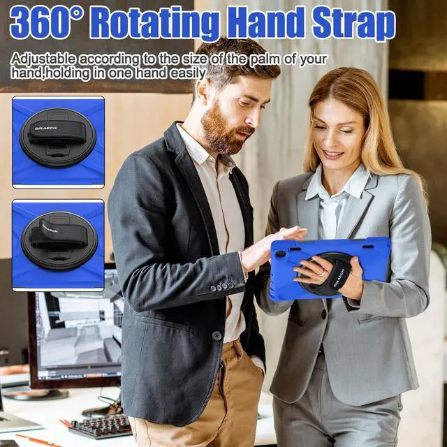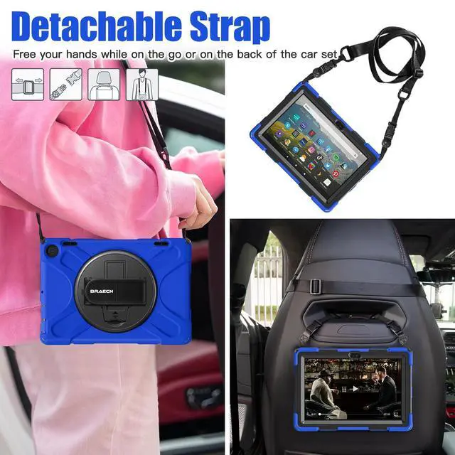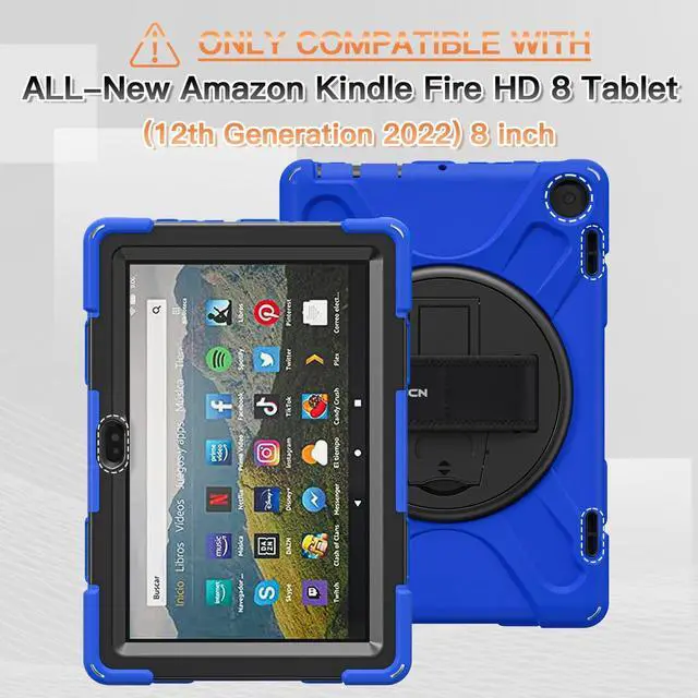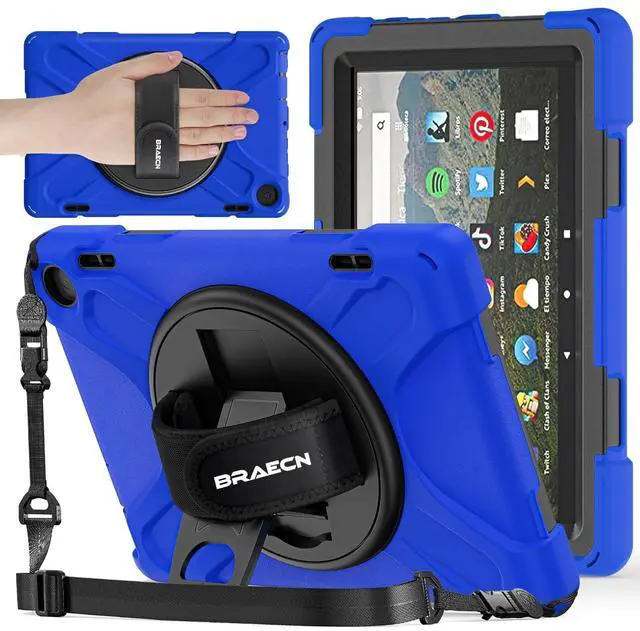BRAECNstock for Fire HD 8 Tablet Case 12th Generation 2024/2022 8 inch with 360 Rotating Hand Strap + Stand, Shoulder Strap, Pencil Holder, Shockproof Rugged Heavy Duty Protection Suitable for Any People (Men Women Kids Girls Old Man ) Suitable for Any Scene (Travel, Working, Meeting, Warehouse, Car, in School or Outdoors )