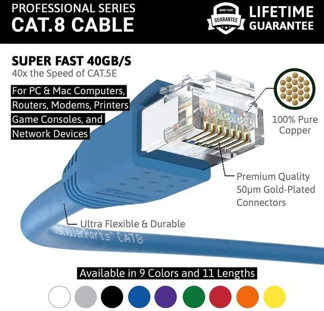 High Speed Cat8 Cable: The Installerparts Cat8 Patch Cable Is Ideal For Use In A Performance Demanding High Speed Ethernet Network Or Where Future-Proofing Is Desired. Our Cat8 Cables Are Fully Backward Compatible With Existing Gigabit Or Cat5, 6 & 7 Networks. ^^ High Quality 100%