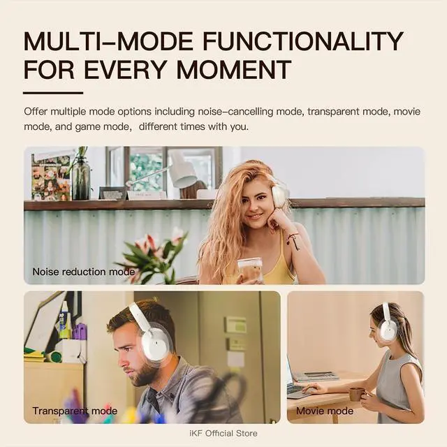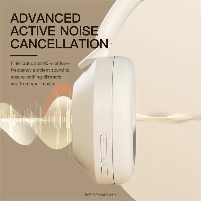 [Active Noise Cancelling Headphones ] Effectively reduce background noise with hybrid active noise cancelling (ANC) technologyideal for flights, commuting, and loud environments. Perfect choice for buyers searching noise cancelling headphones for travel, work, or outdoor use. Control ANC levels easily through the iKF app. ^^ [HiFi Sound Quality with 40mm Drivers] Enjoy powerful bass and crystal-clear treble with 40mm silk diaphragm speakers. Tuned for high-fidelity audio, with immersive 3D surround sound in movie modeideal for buyers looking for HiFi Bluetooth headphones for music, movies, and gaming. ^^ [Battery That Keeps Up] Stay powered for days with up to 130 hours of playtime (95 hours with ANC on).