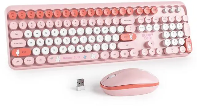 • Retro Round Keycaps and Typewriter Design: This cute keyboard and mouse wireless not only looks great but also offers a satisfying tactile feedback, reminiscent of classic typewriters. The combination of modern technology and vintage charm makes it a perfect addition to any desk setup.