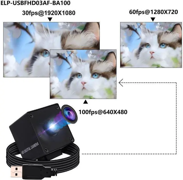 Frame Rates: can drive 100fps@480P; 60fps@720P; 30fps@1080P, high speed USB 2.0 interface,, picture format MJPEG or YUY2 optional.