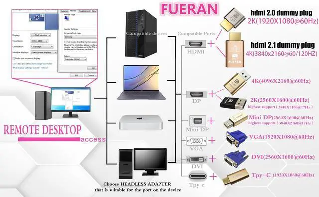 Advantage Compatibility: Applicable to any discrete graphics card, notebook with HDMI output, Support PC Windows, Mac Mini OSX, linux, and other operating systems. ideal for game streaming, VR, and the use of Mini server with screen sharing, streaming from main pc to steam deck or ROG AllyUsed for Govee Gaming Lights on a Wacom CintiqWorks with win11Works for 120fps Steam LinkGot this for a headless gaming pc accessed via MoonlightBest dongle to tweak for 4k 120hz HDR Moonlight streaming. ^^ 4K HDMI 2.1 dummy plug makes PC to enable
