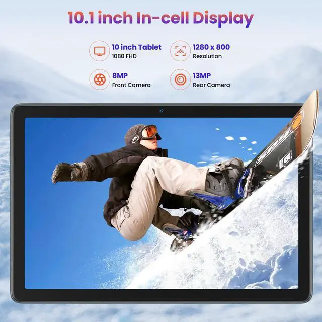 This tablet has dual slots for Nano SIM card (SIM card not included), and can provide fast and steady 4G/3G/2G connectivity and internet access. ^^ Extra memory experience + 1TB ExpandableThis 10 inch tablet features a powerful 128GB ROM+8GB+ (6GB virtual) RAM, and a micro SD card slot that expands the tablets storage up to 1TB. Additional expansion, which can store more games, movies, videos, music, and work software for you, and supports Netflix, Facebook, Tik Tok, Youtube, and other software. ^^ 8+13MP Dual Camera This 10.1 -inch android tablets dopts upgraded in-cell LCD technology, which improves screen response time, touch interactions, input accuracy and color accuracy.