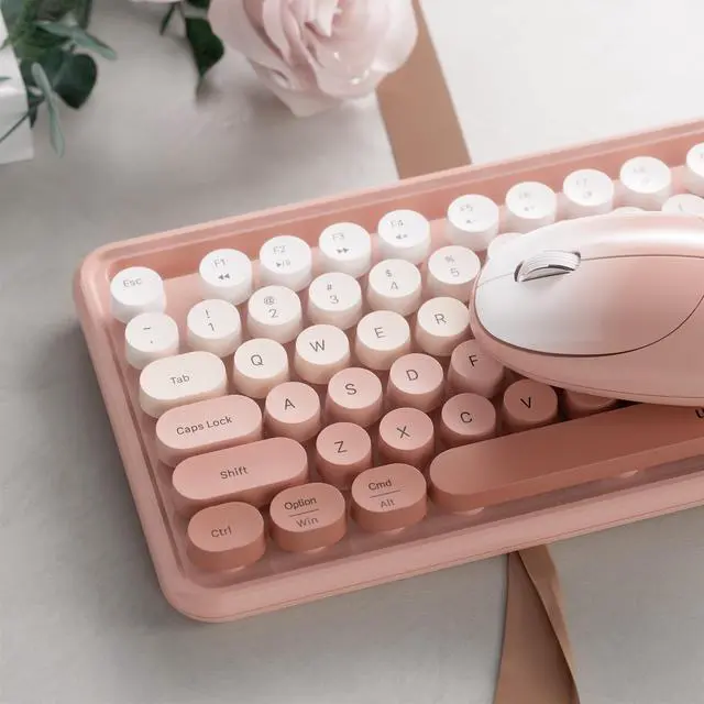 Stylish & Colorful Retro Design - Add charm to your workspace with a colorful wireless keyboard and mouse combo. Featuring 104 round floating keycaps in a vibrant, retro-style palette thats perfect for aesthetic desk setups ^^ Stable 2.4GH z Wireless Connection - Enjoy smooth, lag-free performance with 2.4GH z wireless technology. Just plug in the USB receiver for instant, reliable connectivityno drivers needed ^^ Built-In Phone Holder for Convenience - Multitask effortlessly with an integrated phone holder. Keep your device upright and within view while working, typing, or streaming ^^ Ergonomic Wrist Rest Support - Work comfortably for hours with the built-in wrist rest that reduces strain during long typing sessions.