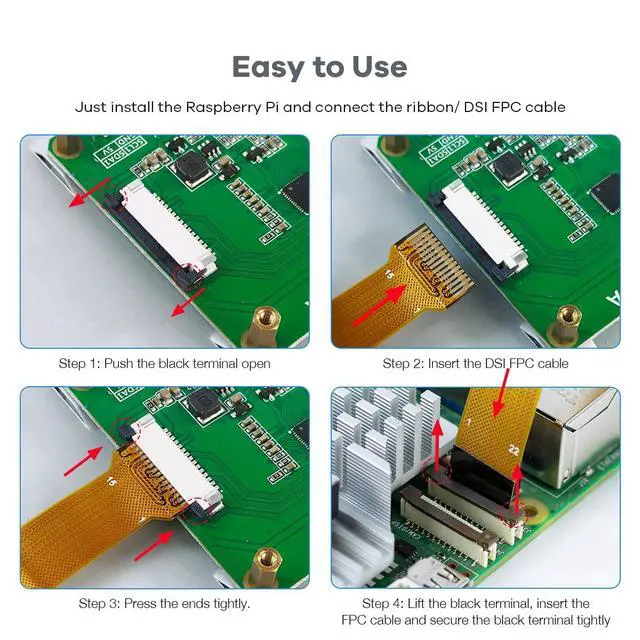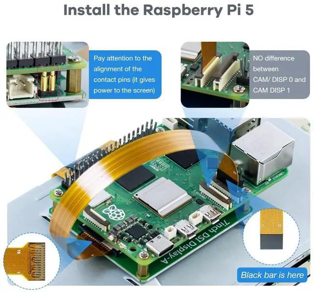 List: 1 x 7 inch Touchscreen4 x Screws (M 2.5 )4 x Copper Pillars (M3) 1 x Mini Screwdriver1 x 2 Pin DuPont Line1 x Ribbon cable (5cm - For RPI 4B)1 x Ribbon cable (10cm - For RPI 4B)1 x Ribbon cable(20cm - For RPI 4B)1 x Ribbon cable(16cm - For RPI 5)
