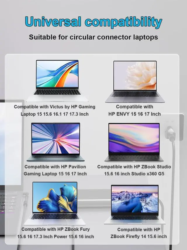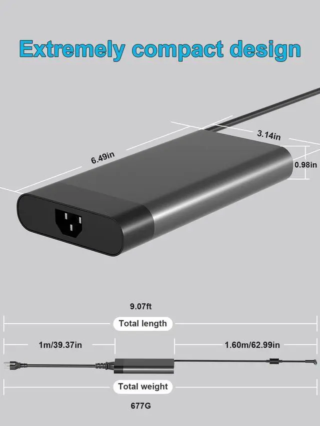 Power Jack Connector Type: 4.5 mm 3.0 mm Smart Blue Tip. (It is not fit for laptops devices requiring more than 200W) ^^ Stable Compatibility; Experience faster, more reliable charging with this Portable charger. Lightweight and compact size makes it easy to pack for business trips, vacations, or outdoor or home or daily use at the office. Durable Construction and Made with heat-resistant materials for extended durability. The built-in chip automatically adjusts power based on your devices temperature and battery status. Less heat, safer charging, and a battery that lasts longer ^^