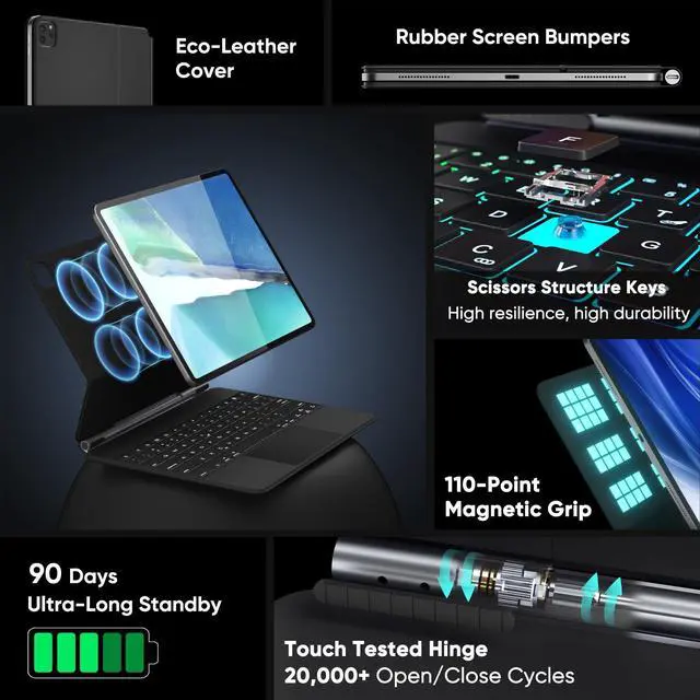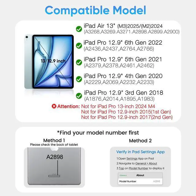 Adaptation Model- Compatible with iPad Air 13 (M2) 2024/ (M3) 2025 and iPad pro 12.9 inch 6th 5th 4th 3rd generationEasy to carry anywhere, no matter you are in the office, at home, or on a go, transform your ipad 10th into a Macbook within a second. ^^ Multi-Trackpad - Cursor and multi-touch gestures designed for ipad pro 12.9 inch. Simply put your ipad on the magnetic cover of the ipad magic keyboard case, and you can use the tablet like a laptop, providing a new navigation mode for your ipad, making it easy for you to edit documents or presentation pages on the ipad pro and Browse the web, effectively improve work and study efficiency.