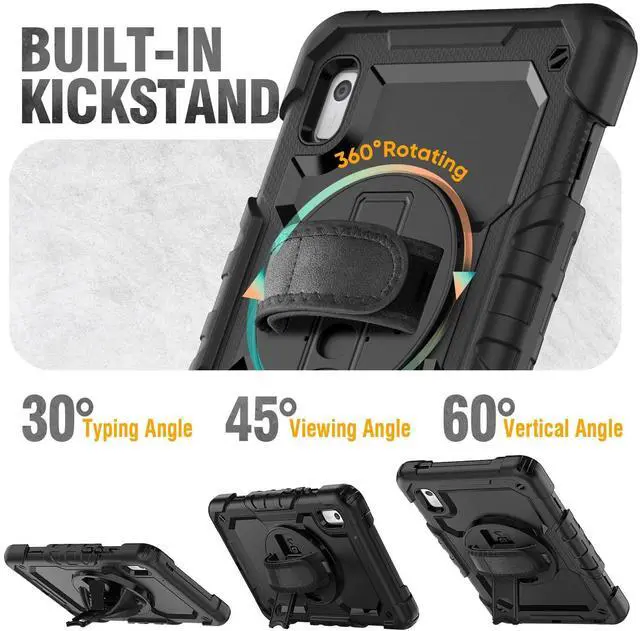 Rotating Hand Strap & Stand: This shockproof M9 tablet case 2024-2023 supports in different viewing/drawing/typing angles, you can hold the tablet safely by one hand, ideal for meeting, working. Also, the stand can be folded up when not in use.