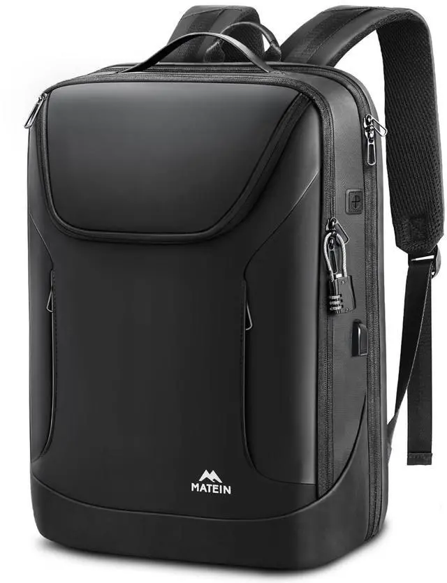 Waterproof High Tech Material: MATEIN Waterproof laptop backpack for men is made from luxurious matte PU fabric with a blue polyester lining to protect document & plan from spills or rain. Equipped with a zippered card pocket on the left shoulder strap ideal for cash, credit cards. Abrasion-resistant smooth top handle makes it a convenient commuter backpack. The breathable & ventilated design of anti theft business backpack with soft padding on the back takes the pressure off shoulders and back ^^ Inside