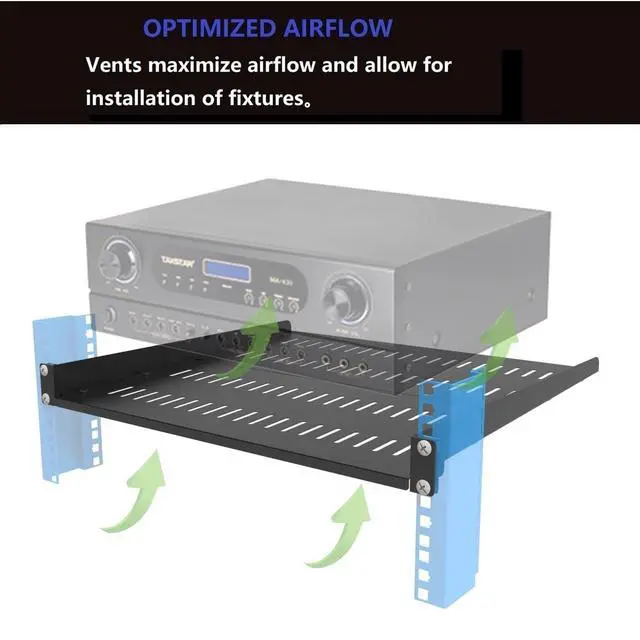 Features: 1. With its sleek black finish, it seamlessly blends into any server room or data center environment. Maximize space utilization and keep your hardware organized with this practical and efficient 1U server rack shelf.