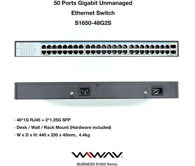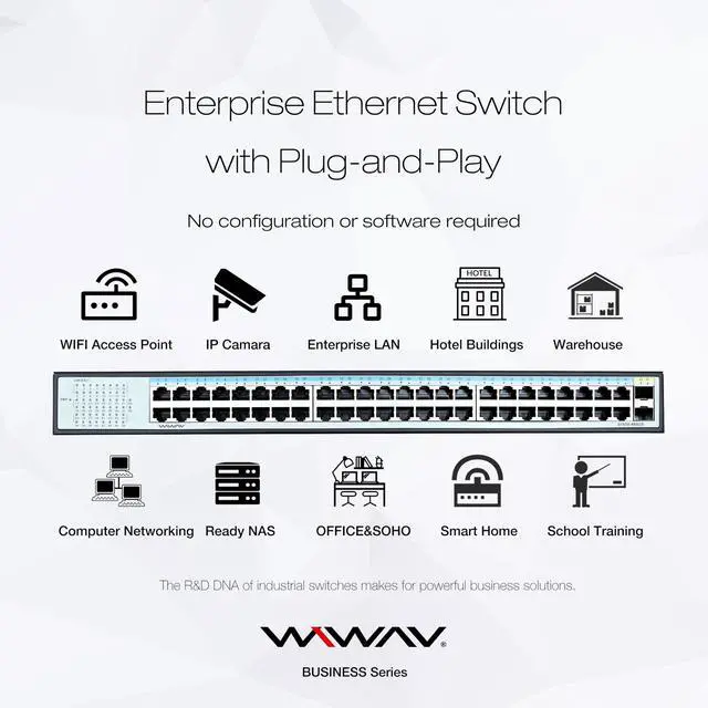 Built to Last Heavy-Duty All-Metal ^^ Casing Engineered with WIWAVs signature full-metal enclosure, offers better heat dissipation and physical protection than plastic models - ideal for 24/7 operation in demanding environments. ^^ True Gigabit Speed Smooth, Fast, and Reliable ^^ All 10/100/1000Mbps ports deliver full-duplex gigabit performance for seamless 4K streaming, fast file transfers, IP camera feeds, and business-grade connectivity. ^^ Hassle-Free Plug & Play No Setup Required ^^ Just power it up and connect your devices. WIWAVs auto-negotiation technology instantly matches optimal speed and duplex - no software, no configuration, zero downtime.