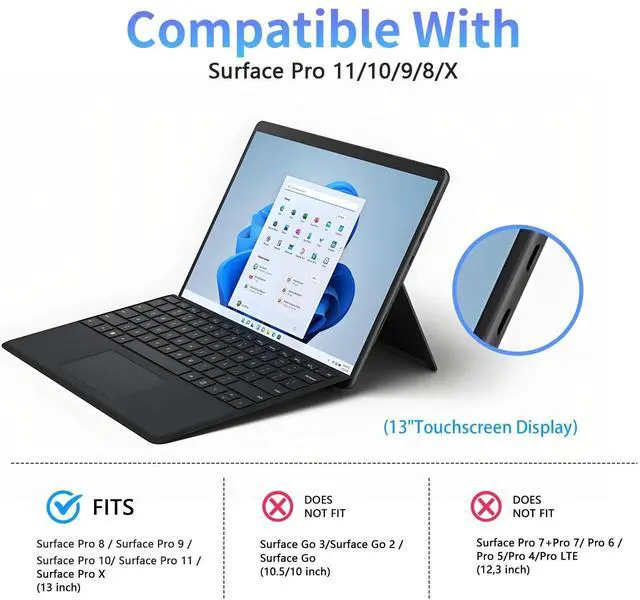 Perfectly CompatibleThe case is designed for Microsoft Surface Pro 11, Surface Pro 10, Surface Pro 9, and Surface Pro 8 (13-inch), with precise cutouts for ports and buttons. Note: It will NOT be compatible with any other model devices