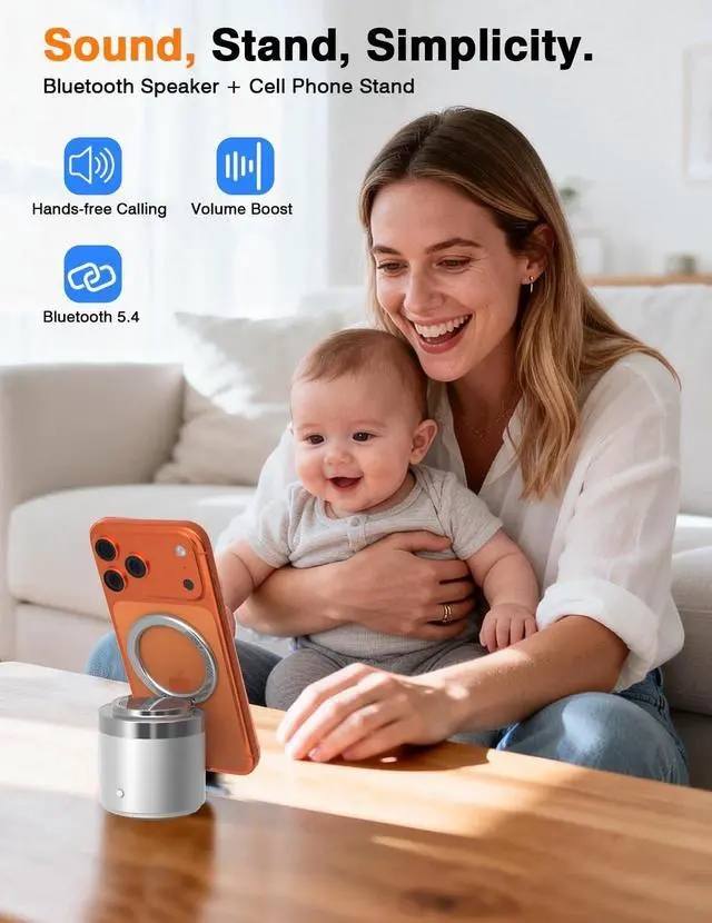 Brilliance: Combines a crisp Bluetooth 5.4 speaker with a powerful magnetic phone stand. Declutter your space and simplify your life.