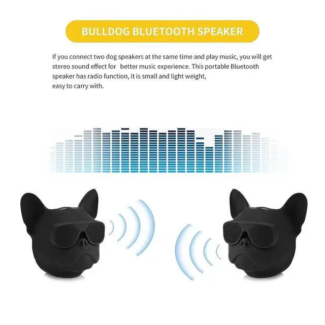 ^^ Portability: This cute bulldog speaker measures 4.33 in* 3.54 in* 4.72 in Highly portable, it's your ideal companion for outdoor activities, camping, beach parties, and even outdoor adventures. It's perfect for family gatherings, picnics, camping, travel, and relaxing in your bedroom, enriching your musical experience in a wide range of settings.