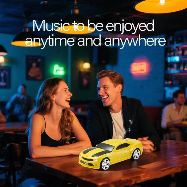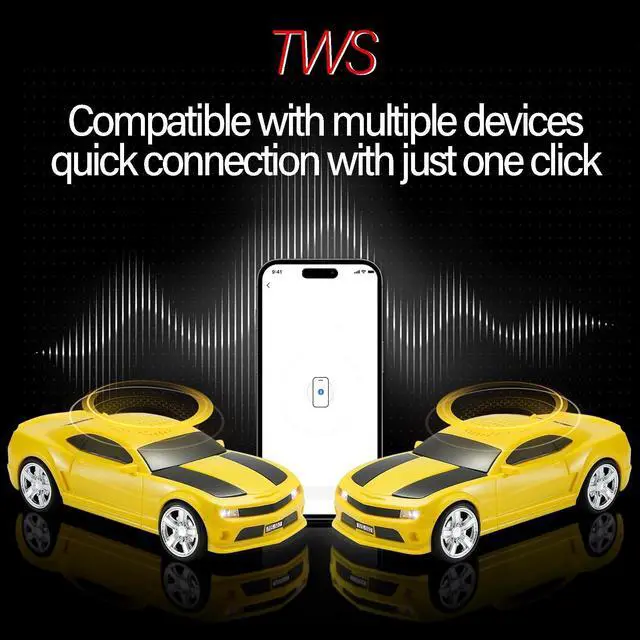Sports Car Design Stylish car model Bluetooth speaker with a sleek sports car look, movable wheels, and detailed craftsmanship. A perfect mix of tech and collectible decor ^^ High-Quality Stereo Sound Delivers powerful audio with rich bass and crystal-clear treble. Supports TWS pairing for immersive dual-speaker surround sound ^^ Multi-Source Playback + FM Radio Stream via Bluetooth, insert a USB or TF card, or tune in to FM radio. Ideal for users looking for flexible listening options without needing to stay connected to a phone ^^ LED Party Lights Dynamic LED lights sync with your music, creating a fun atmosphere for parties, gatherings, or simply enjoying music at home ^^ Portable & Gift-Worthy Compact, rechargeable, and easy to carry.