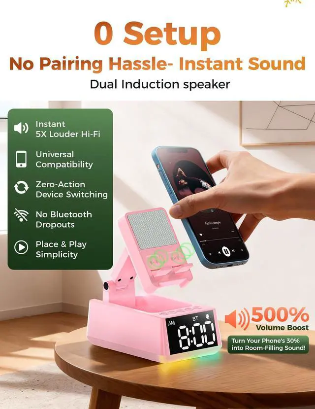 Instant Volume Boost-No Bluetooth RequiredNo more weak phone speakers. Just place your phone on the stand and enjoy louder, clearer sound instantly. Perfect for quick use without any setup ^^ Instant Sound, No