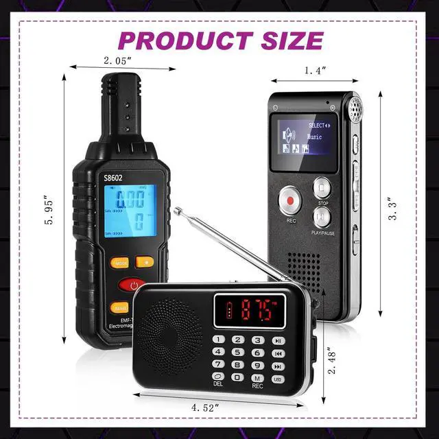 includes: 1 x EMF meter1 X 8GB audio recorder1 x