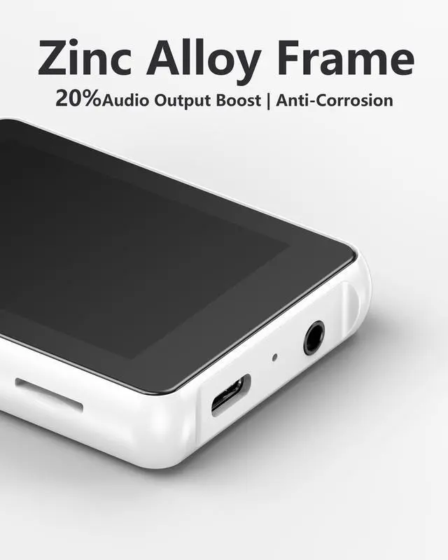 Premium Zinc Alloy & Pocket-Friendly Build Crafted from high-grade Zinc Alloy,this Metal Music Player features an ergonomic Rounded Corner design,creating a durable,Slim MP3 Player that feels premium and wont scratch your belongings in your pocket.