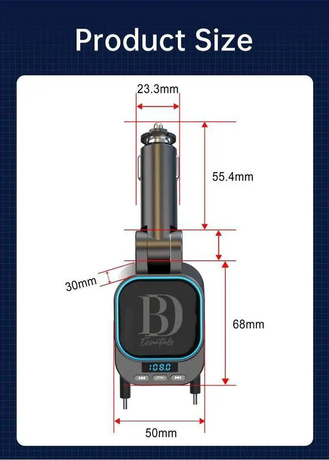 The charger includes both USB-A and USB-C ports and supports fast charging protocols such as PD 3.0, QC 3.0, AFC, SCP, and FCP, making it compatible with iPhones, Samsung Galaxy, Google Pixel, and all USB-C devices. This product also features an integrated microphone, allowing you to easily answer, redial, or end calls with a single button. You can also control music playback using the buttons on the Bluetooth FM transmitter. It is also compatible with 12V-24V vehicles, including trucks, off-road vehicles, saloons, SUVs, and more.