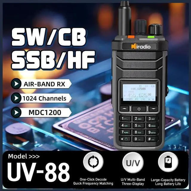 1. Say goodbye to bulk! The thin and ergonomic design provides a sleek aesthetic and a lightweight feel, making it comfortable for extended use during both commercial and recreational activities ^^ 2. Built with metal material for enhanced durability, the Y23UV-88 is dust-proof, crush-resistant, and made with eco-friendly materials, ensuring it withstands tough environments while being environmentally conscious. With support for 1024 channels, it offers exceptional versatility and performance ^^ 3. Simplify your setup with 1-second matching, eliminating the need for cumbersome cable programming. The Y23UV-88s quick decoding ensures effortless and seamless communication ^^ 4.
