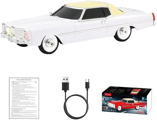 Replica Retro Sedan Design A true car model Bluetooth speaker, designed with inspiration from classic sedans. Features movable wheels and detailed styling, ideal as desktop decorations for car enthusiasts and collectors ^^ HD Stereo Sound with TWS Pairing Delivers clear, balanced audio for everyday listening. Use the TWS function to pair two units and create a fuller stereo sound experienceperfect for Home Audio Speakers or party setups ^^ Multiple Playback Modes + FM Play music via Bluetooth, USB, TF card, or tune in to FM radio. No phone neededgreat for flexible use indoors or on the go.