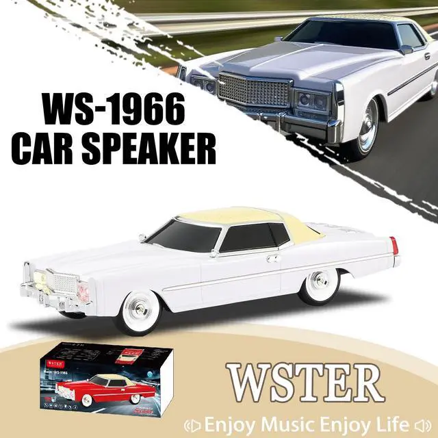 WSTER WS-1966 Retro Sedan Bluetooth Car Replica Speaker HD Stereo, TWS, FM, USB/TF, LED Lights, Type-C Portable Model Car Speaker with Mic for Office, Outdoors & Gifts(White)