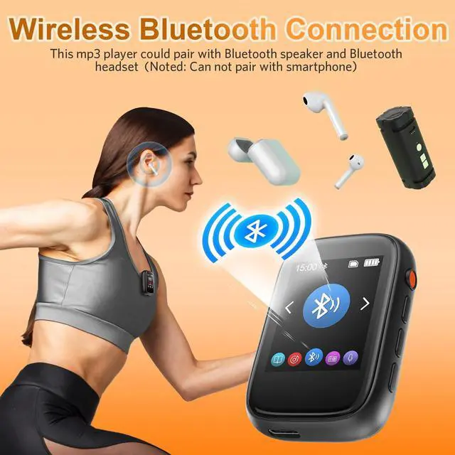 Mp3 player with Bluetooth 5.3E quipped with the latest version of Bluetooth, this mp3 player can be paired with Bluetooth speakers and Bluetooth earbuds and has the characteristics of fast Bluetooth connection speed and low battery power consumption, Which is very suitable for connecting Bluetooth earphones or Bluetooth speakers to enjoy music when exercisingNoted: Unable to pair with Bluetooth on the phone ^^ Multi-function Music playerThis Multi-function mp3 player supports FM Radio, Voice recording(Support recording from microphone/line-in), E-book (Support TXT format only), VideoVideo