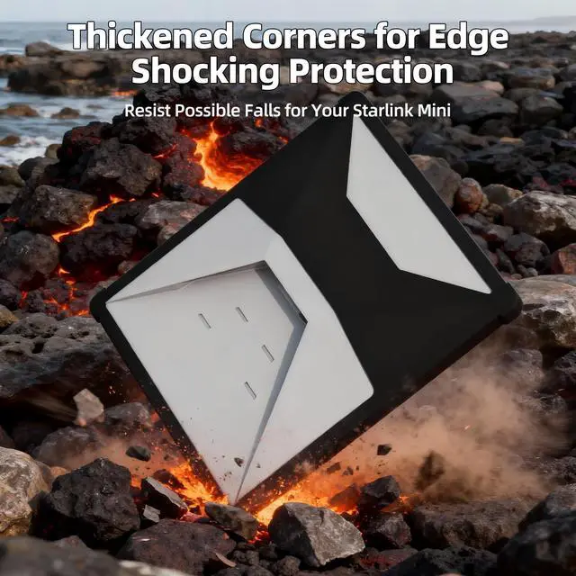 ^^ Hexagonal Cooling Design: Features an internal hexagonal pattern that improves airflow around the Starlink Mini. This smart design of this Starlink Mini protective cover helps prevent overheating during extended use, supporting peak performance and longevity. ^^ Reinforced Corners for