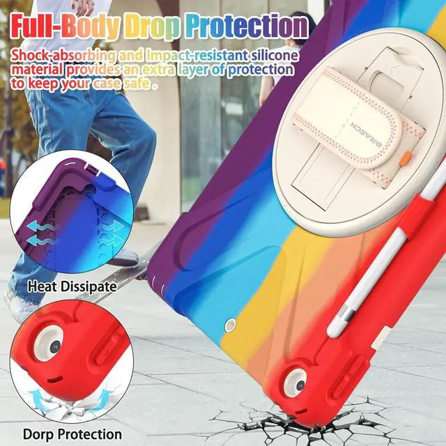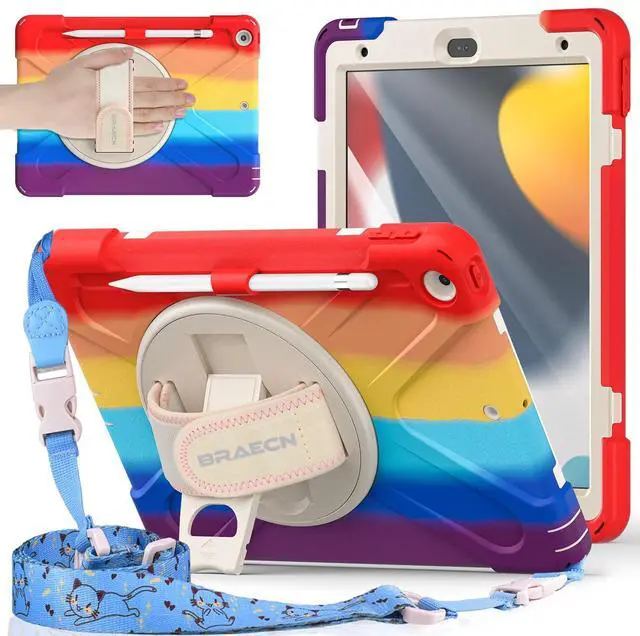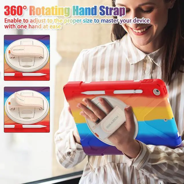 Hand Strap & Multi-Angle Stand: 360 rotating hand strap offers a secure one-handed grip for children, adults and seniors. Adjustable stand supports vertical and horizontal viewing at (30- 45- 60), ideal for studying, note taking, drawing, video calls, typing and presentations ^^ Portable Shoulder Strap & Practical Functions: Adjustable shoulder strap enables hands-free carrying for travel, work and outdoor activities. Can be attached to car headrest for backseat entertainment. Built-in pencil holder keeps stylus handy and precise cutouts for all ports, buttons, cameras, speakers and Touch ID ^^