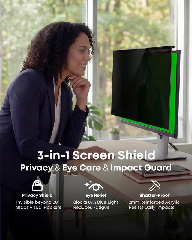 Setup: No installation hasslesimply hang it on your monitor in 1 second, and remove it just as easily when not needed. Effortlessly switch between privacy, sharing, and full-screen modes, ideal for enterprise teams, remote workers, and frequent travelers. Works with fully frameless monitors and those with bottom bezel 3mm raised. ^^ 460nm Blue Light & UV Blocking for