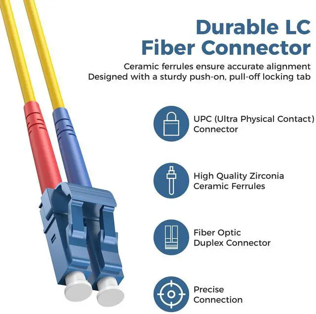 LC/UPC to LC/UPC Fiber Optic Internet Cable, Single Mode Patch Cable, Fiber Optic Jumper Optical Patch Cord - SIMPLEX - 9/125um - OS1/OS2 Compatible, LSZH yellow