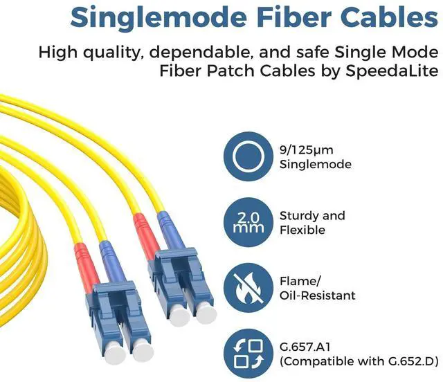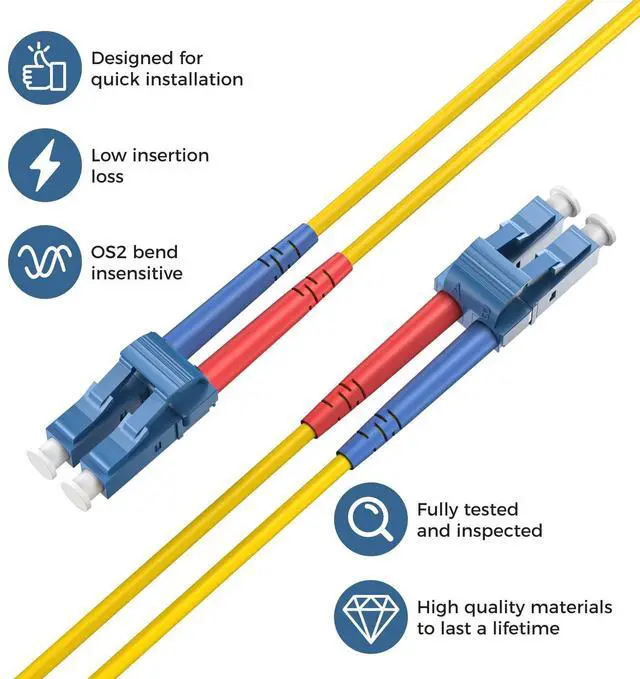 High Performance OS2 Single Mode FiberLC to LC duplex fiber optic patch cable built with 9/125m OS2 single mode fiber, designed for long distance and high bandwidth transmission, ideal for Gigabit and 10G Ethernet connections.