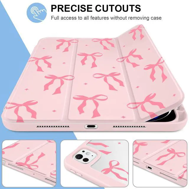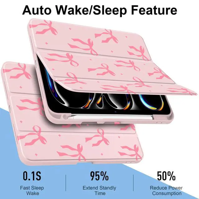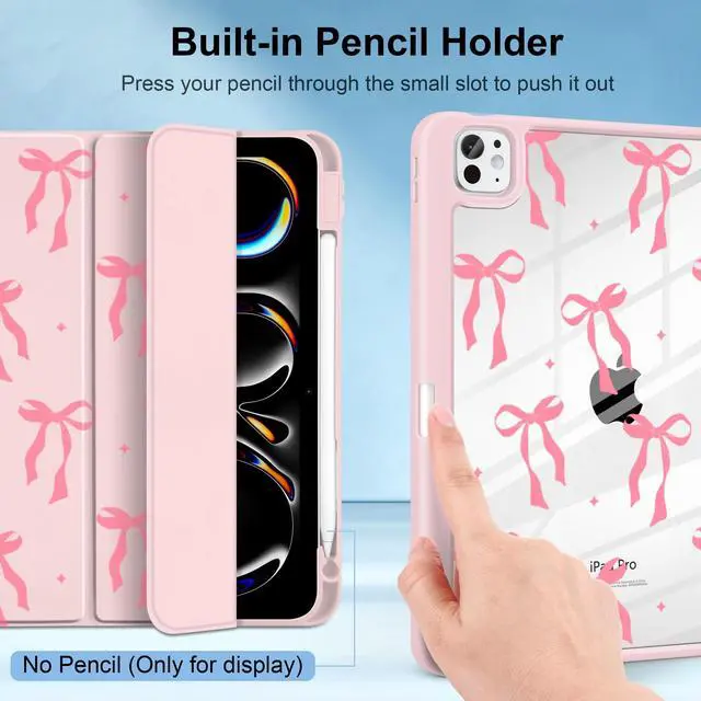 MecBevia Case for iPad Pro 11 inch M5 2025 / M4 2024 (6th/5th Gen) A3357, A3358, A3359, A2836, A2837, A3006 Built-in Pencil Holder & Auto Wake/Sleep, Pink Bow
