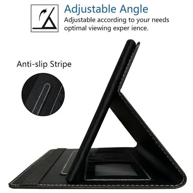 Designed with 4 delicate card slots inside for you to carry your necessary cards. There is a flexible pencil holder at the edge of the shell for keeping your stylus in place. ^^ Auto Wake/Sleep- Built-in magnetic strip, automatically wakes or puts your tablet to sleep when the lid is opened and closed. Protects and extends battery life. ^^ Stand Design- Convenient stand position for watching movie or typing, and offer a cozy angle to view and let your hands free. Easy installation and removal.