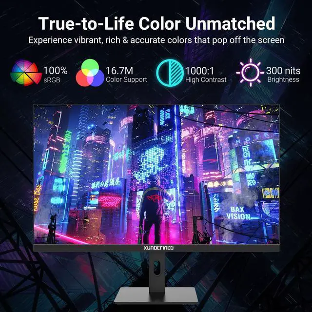 Plus, VESA compatible (100x100mm) for seamless wall mounting or multi-monitor setups ^^ Seamless Connectivity is at your fingertips with 2 HDMI 2.1 and 2 DP 1.4 ports, ensuring compatibility with a wide range of gaming consoles and streaming devices. This 4k 144hz monitor is designed to elevate your gaming sessions and multimedia experiences, making it a versatile addition to your setup ^^ XUNDEFINED Services, We provides high-quality computer monitor and premium services for our customers, included worry-free 24-month after-sales service and lifelong technical support. If you find any damage, malfunction or missing accessories, please feel free to contact us