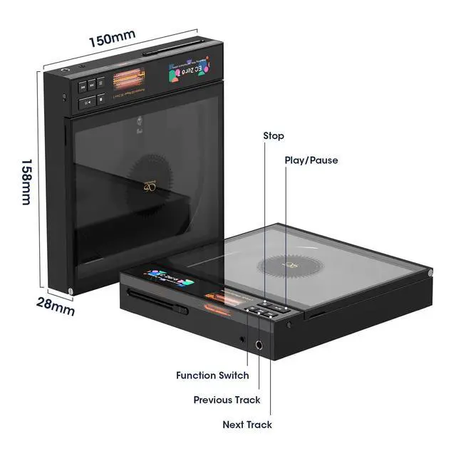 With both 3.5 mm single-ended and 4.4 mm balanced headphone outputs (up to 1220mW@32), this player easily drives demanding headphones and supports digital optical/coaxial output ^^ Retro Design with Visual Tube Display Features a 1.67 -inch retro-style UI screen and transparent visual tubes that showcase real-time operation. The sliding potentiometer offers smooth and precise volume control, blending vintage aesthetics with modern functionality ^^ Practical CD Ripping & Anti-Mishap Features Includes a CD ripping function for converting discs into lossless digital files. The side lock button prevents accidental touches, making this player both intelligent and reliable for daily and on-the-go use