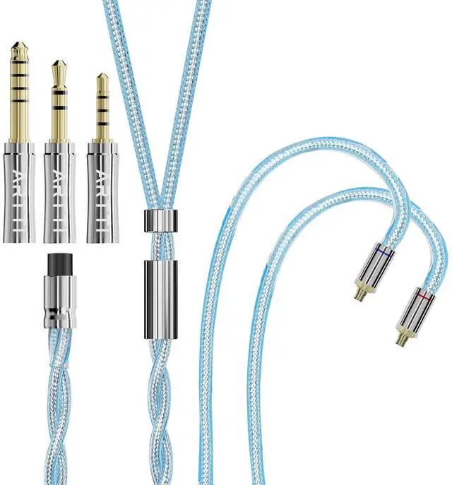 ARTTI Spark Earphone Upgrade Cable 2 Cores 244 Strands Silver-Plated Copper 7N OCC HiFi IEM Cable 2.5/3.5/4.4mm 3in1 Plug 2pin/MMCX/QDC Cable (Blue, MMCX Straight Plug)