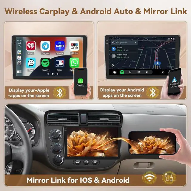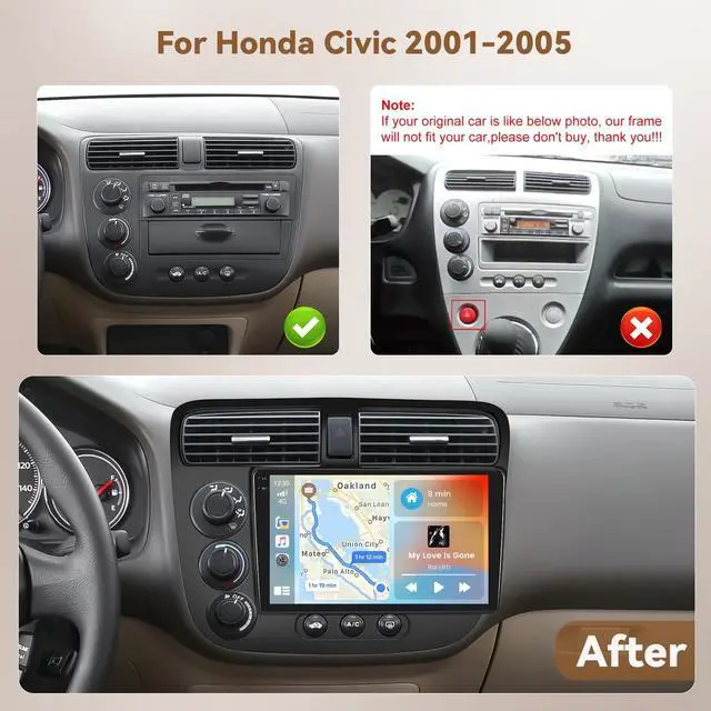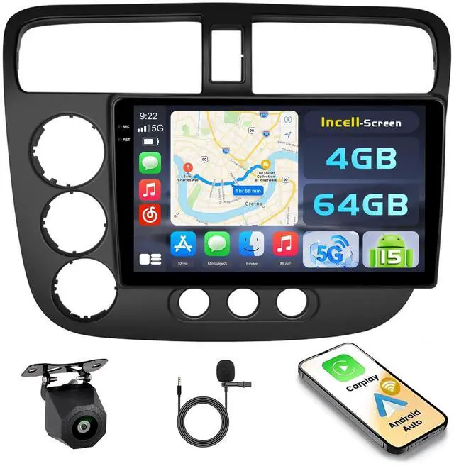 [Upgraded Android car stereo for honda civic] Android car radio dash kit fit for honda civic 2001 2002 2003 2004 2005. Hikity latest Android 15 stereo Features a 1280720P In-Cell touchscreen with 4G RAM + 64G ROM for smooth operation and faster response ^^ [9 Incell Large Screen Multifunction Car Stereo] For honda civic head unit equipped with 9 In-Cell Screen provides you with wide viewing angles, superior color accuracy, and consistent brightness. Support Wireless&Wired Mirror Link with floating window mode for easy simultaneous navigation and vehicle settings (via WiFi or USB cable) /Split Screen/Multiple UI/AHD Backup Camera/Mic ^^ [Wireless Carplay, Android Auto & Voice Control] This double din carplay radio for honda civic supports wireless CarPlay and Android Auto.