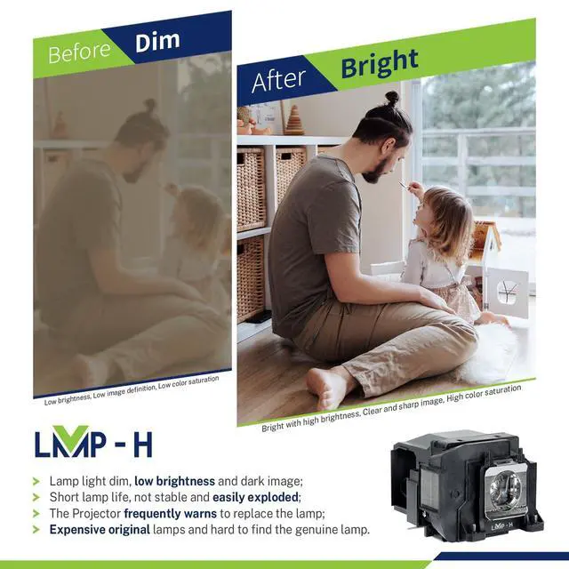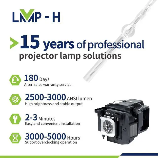 COMPATIBLE MODULES: for powerlite Home Cinema 3500 3100 3000 3600e 3700 3900 3200 3800 eh-tw6600 eh-tw6800 eh-tw6700 eh-tw6600W ^^ LMP-H projectors' bulbs are made of the highest quality materials and have the same functions as your original bulbs. They are perfectly matched and compatible with your projector ^^ All projector bulbs are equipped with enclosures instead of bare bulbs. Our bulbs feature an optimized filament design, which helps prevent the machine from overheating or experiencing abnormal temperatures, thereby protecting the bulbs and the projector ^^ When installing a new light bulb, wait for the old bulb in the projector to cool down before replacing it. And you need to be aware of the connector make sure it connected well ^^ Worry-free after-sales service, giving you great peace of mind. If you have any questions about the order, please feel free to contact our dedicated support team at any time. We will be happy to answer them for you promptly
