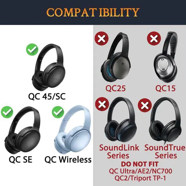 • Compatible With: QuietComfort 45 (QC45)/QuietComfort SC (QC SC)/QuietComfort 35 (QC35, QC35II)/QuietComfort SE (QC SE)/QuietComfort Wireless Over-ear Headphones only.