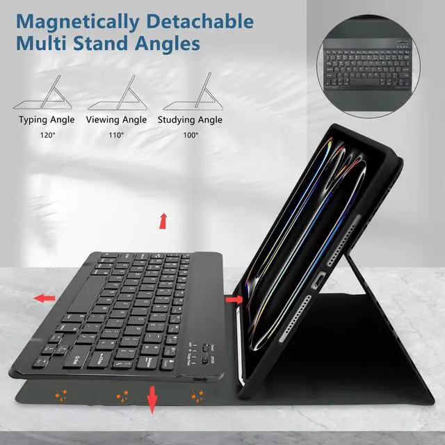 Because an iron keyboard may prevent magnets from attracting to each other, remove the keyboard for optimal sleep/wake up (Detachable, Rechargeable, Magnetically Absorbent) ^^ [Include Content] The box contains the for iPad case, Bluetooth keyboard, keyboard charging cable, and instruction manual. Also included TopPerfekt lifetime warranty. If you have any additional questions or concerns, please feel free to contact us. Pencils are not included