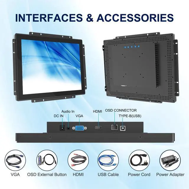 Touch Function - BOSUNRE capacitive touch screen supports 10-point multi-touch operation for responsive interaction. 3mm thickness tempered cover glass, G+G craft that this touch screen has strong anti-interference ability sealed against dirt, dust and liquids withstands front IP65. ^^ Industrial Reliability - Built with industrial-grade components for reliable 24/7 continuous operation. Equipped with HD-MI and VGA signal inputs for stable and flexible connectivity ^^ VESA & Bracket Mounting - BOSUNRE Open frame design supports VESA mounting and bracket installation. Supports portrait or landscape orientation ^^ System Compatible - On Windows 7, 8, 10, and 11, as well as Native Android and Linux, multi-touch is supported.